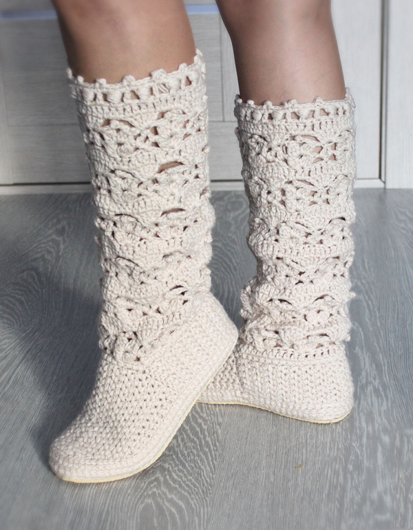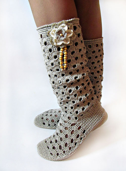 It is believed that the best time of year to wear knitted boots is summer. In dry and warm weather, you can wear boots with delicate patterns and elegant details. And the only thing that can spoil the look of shoes is dust, which is easy to handle.