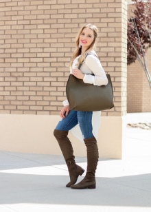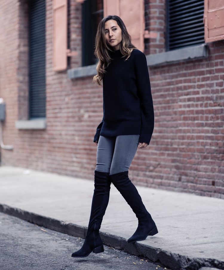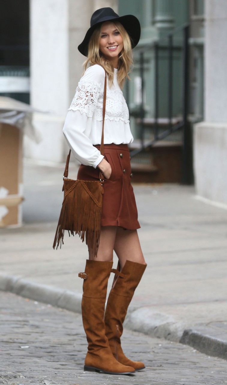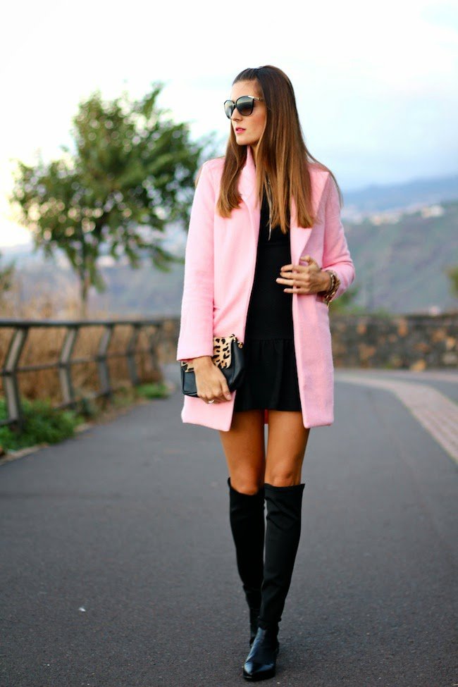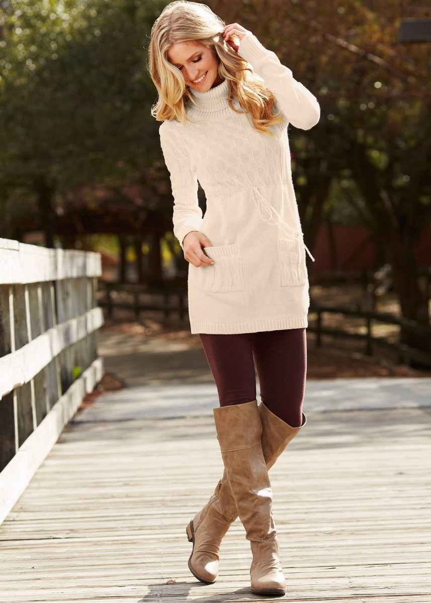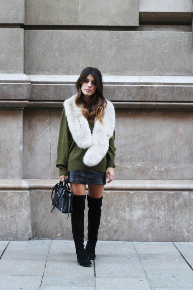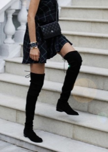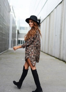 The perfect combination is beautiful suede models with short dresses. You can create a sexy and cheeky outfit with a fitted dress with a mini length. Outfits from silk, velor or velvet will look very impressive. A casual look is easy to make using a loose dress, tunic, or a long sweater in a neutral color.