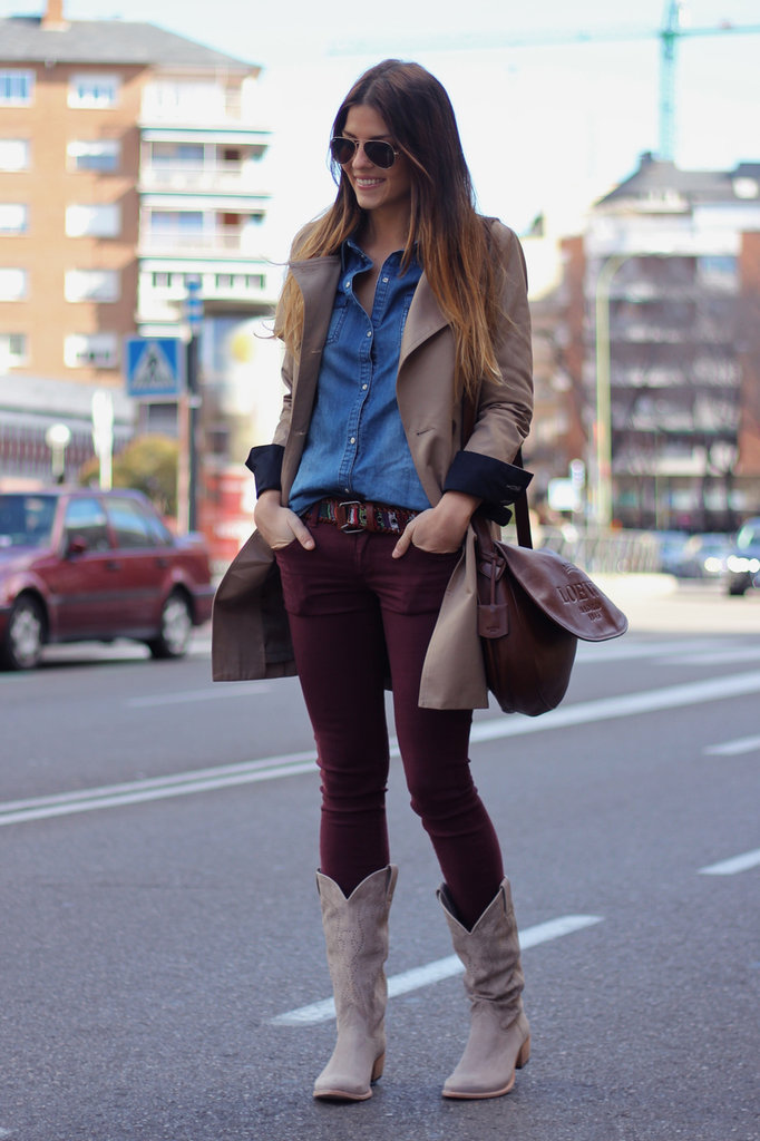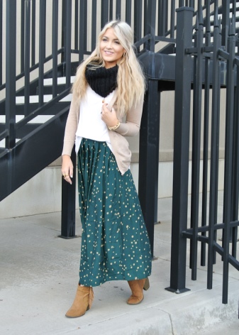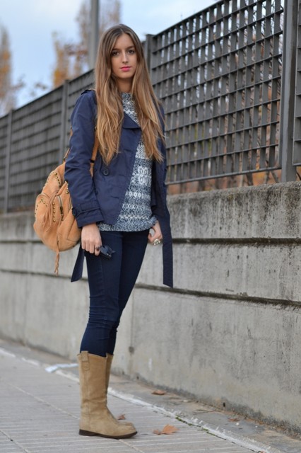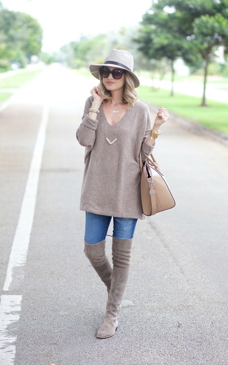 The most successful will be an outfit in which skin-tight jeans tucked into the inside of women's boots. Upstairs you can wear a light shirt, a charming blouse or a warm blouse. The bag of neutral color and light scarf perfectly complement and decorate a stylish look.