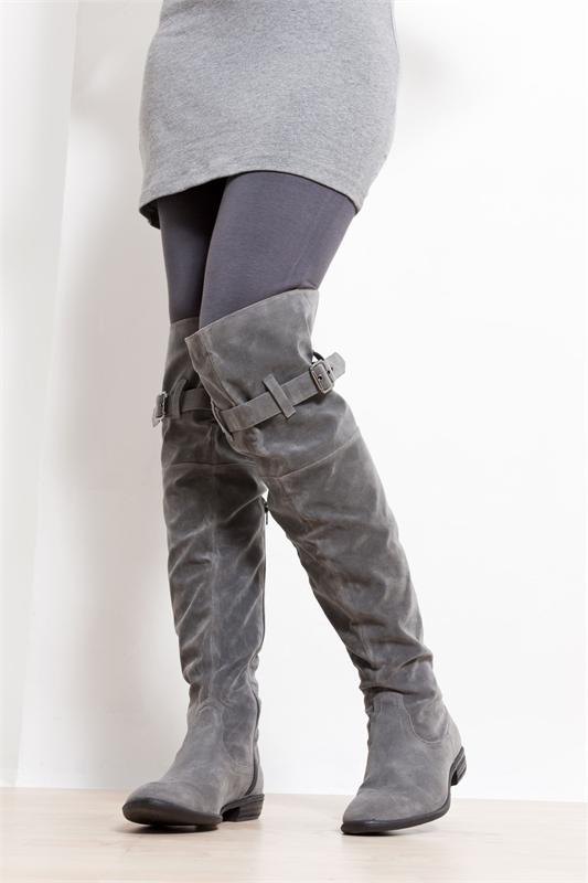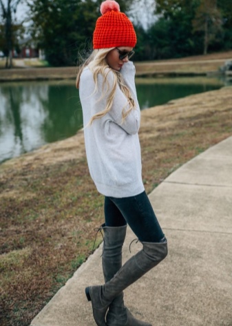 Gray boots made of delicate suede look very impressive. Such shoes (of any color) will be in harmony with other colors. Calm and neutral colors will easily be combined with any outfits.