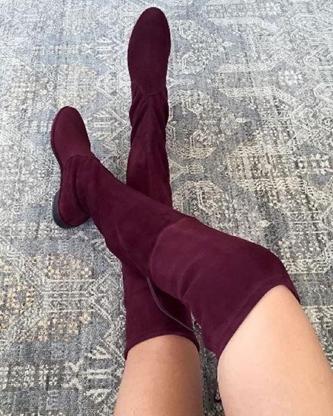 Suede boots look very impressive and attractive. Such shoes can reach mid-thigh. In these products, any woman will look sexy. It is worth remembering that the boots should be carefully combined with various outfits.