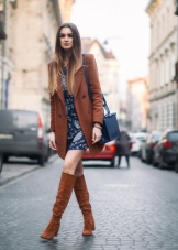 Charming shoes will be combined with straight and fitted coats, raincoats and trench coats of pastel and rich colors (depending on the color of the boots). For warm weather, you can choose an outfit with a short leather jacket or leather jacket. Fur cropped winter fur coats and jackets harmonize with suede shoes.