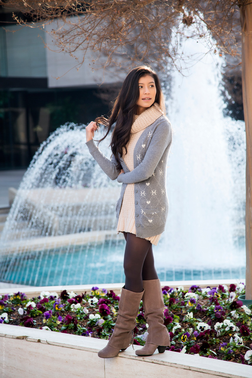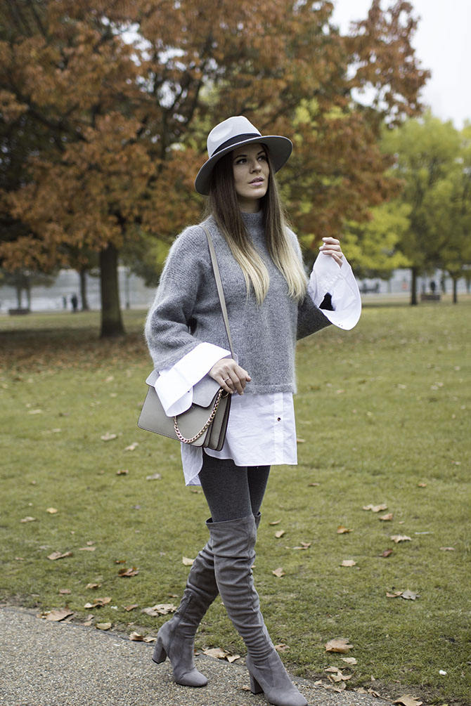Shoes neutral and calm gray color is combined with almost all outfits. The most spectacular are combinations with jeans and shorts, complemented by light sweaters and blouses. Jeans can be replaced with leggings or a straight skirt in a classic color. Dress with gray boots can be decorated with light hats and handbags in beige, white, gray, brown, black and red.