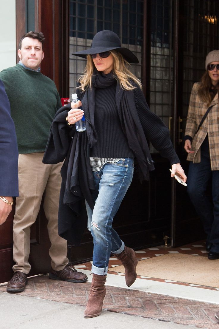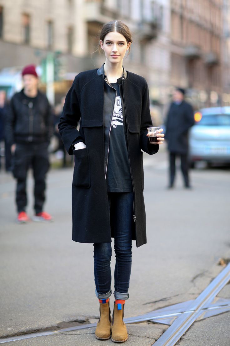 Shoes of any height go well with tight jeans. For black boots, you can pick up fashionable dark skinny, which will make the legs slimmer.