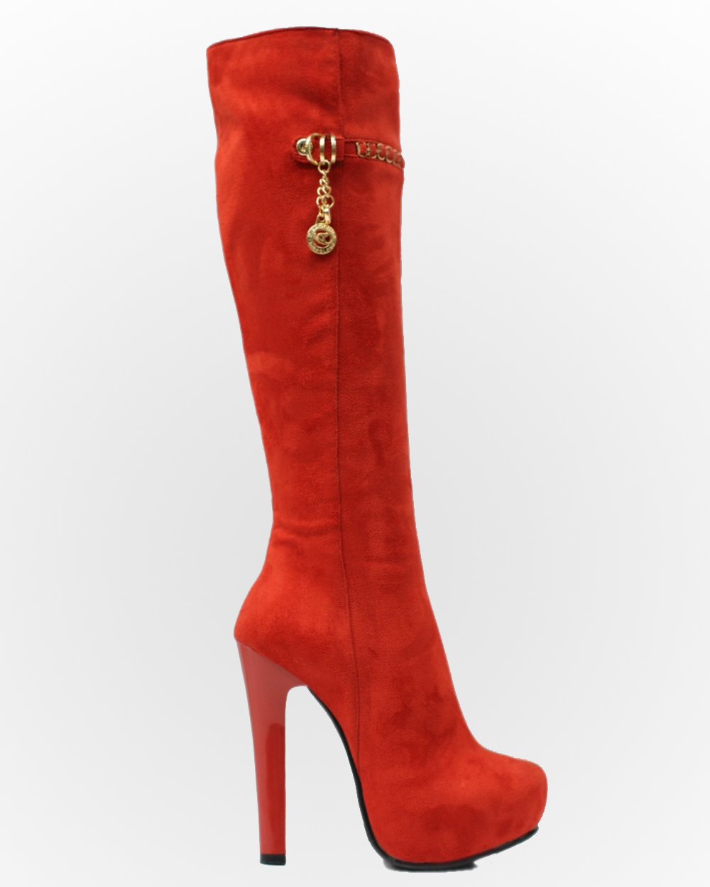 Do you want to look gorgeous and attract manly looks? Red suede boots on a heel will brilliantly cope with this task. A contrasting combination of scarlet shoes, white outerwear and black skirt or leggings will look very impressive. The tandem of a black coat with a red belt and bright boots looks no less bright and attractive. You can complement the image with a spectacular lacquered or matte handbag of red color and a scarf around the neck in monochrome colors.