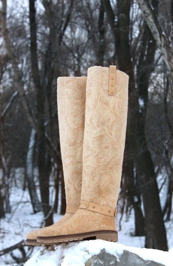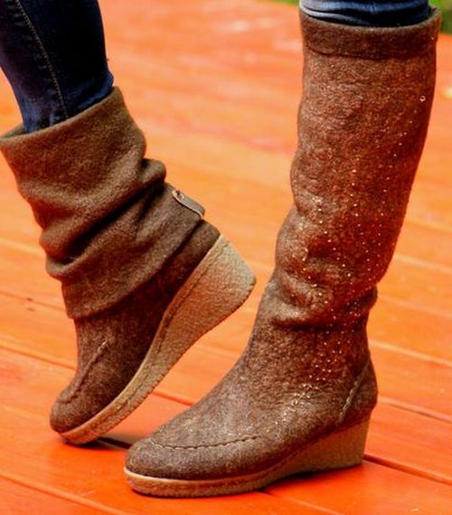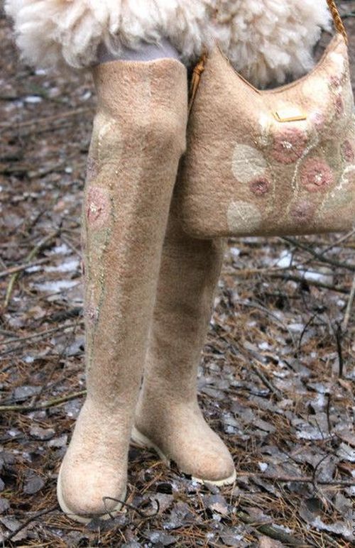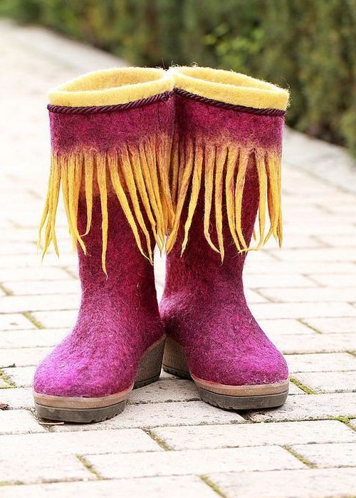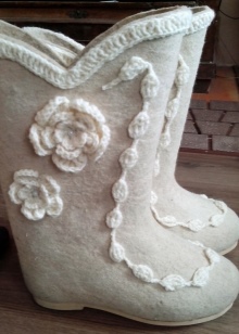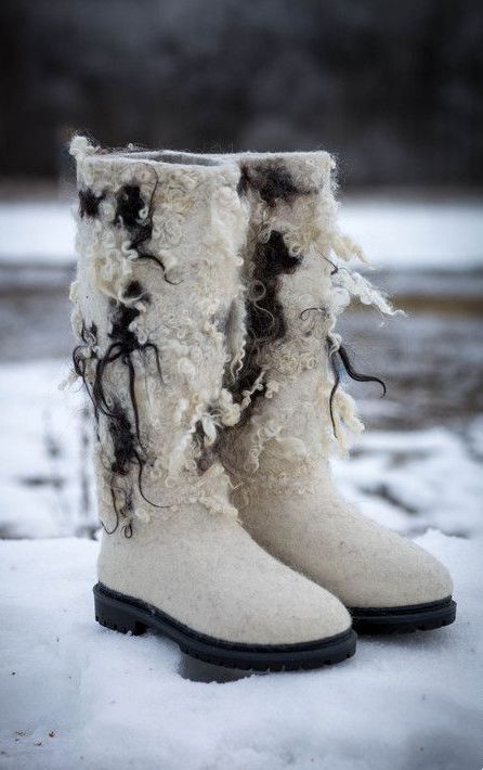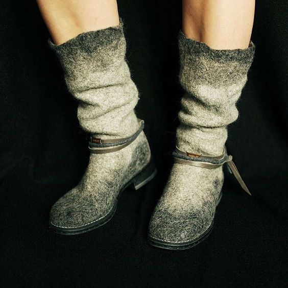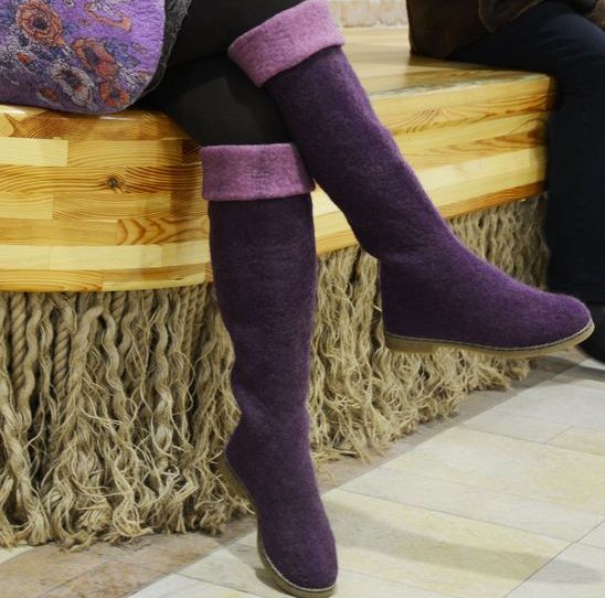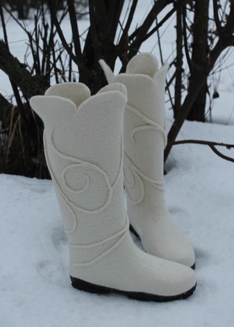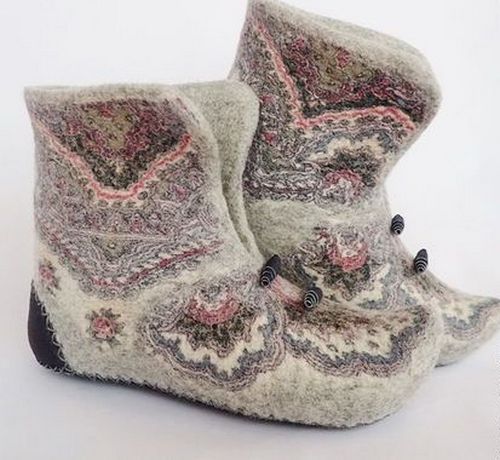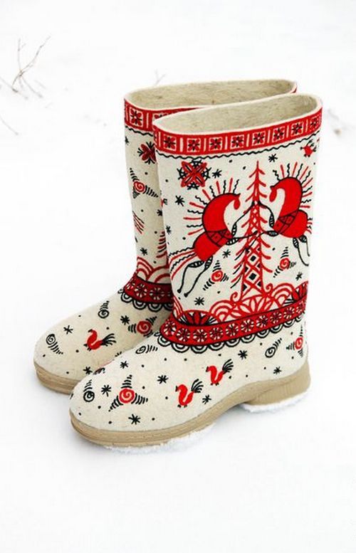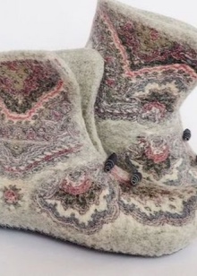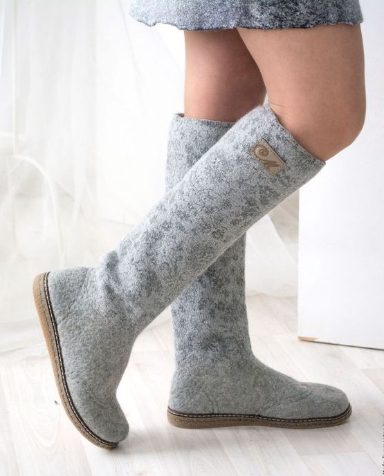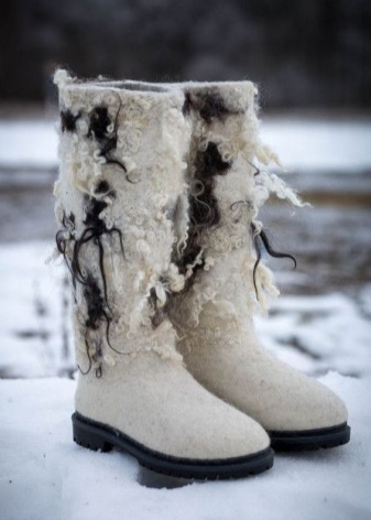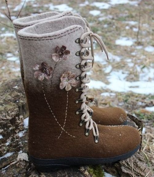 Later, felt boots began to be produced with a sole, and for women felt boots appeared - an analogue of felt boots, but designed in a more elegant, feminine version using heels, decor, jewelry, etc. Not only natural , but also artificial wool.