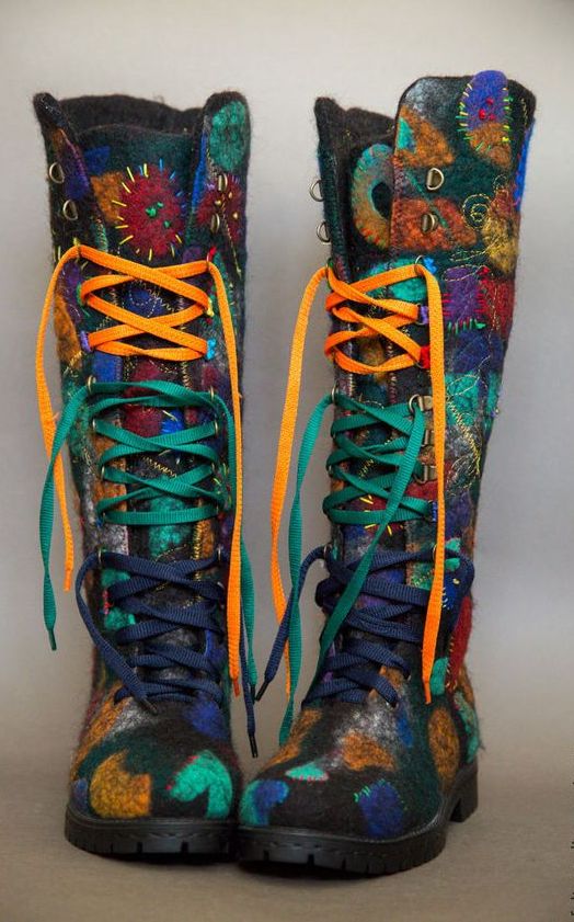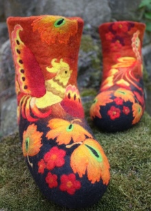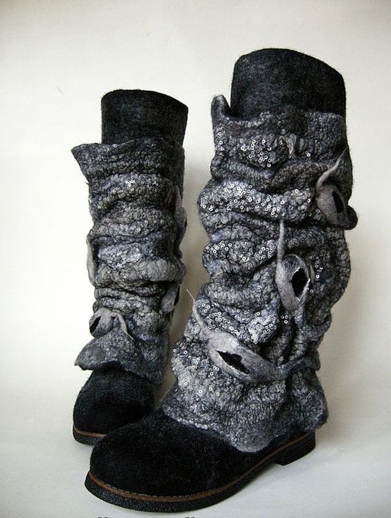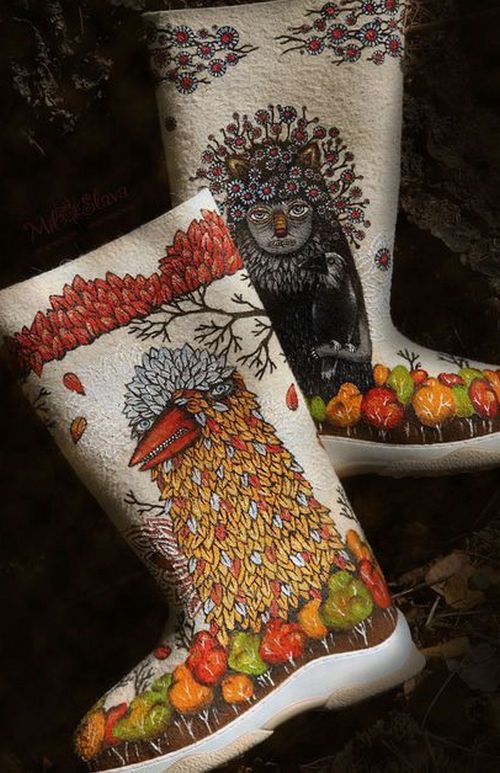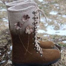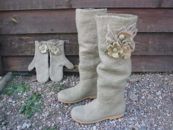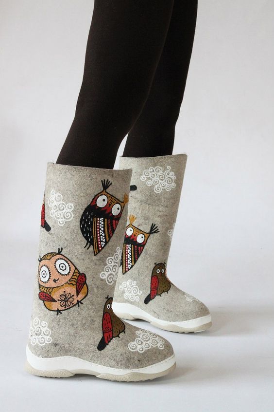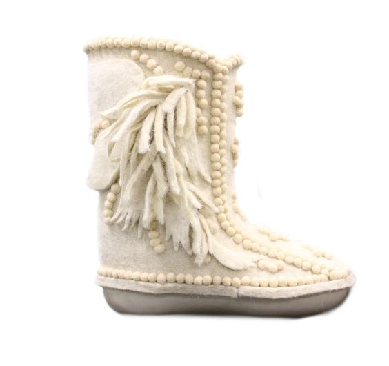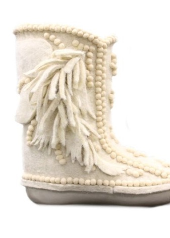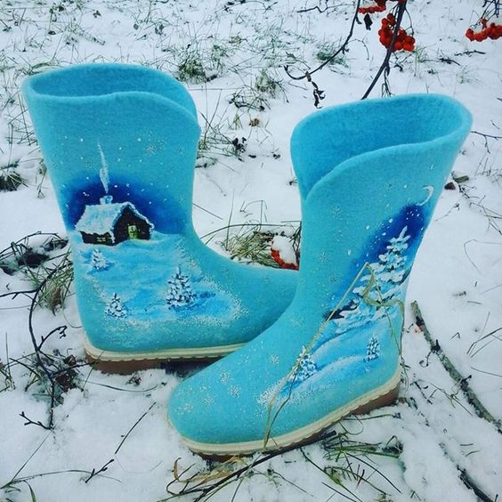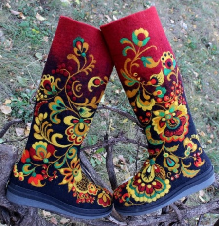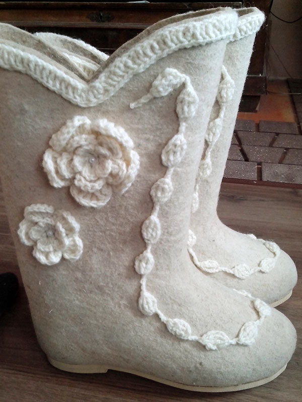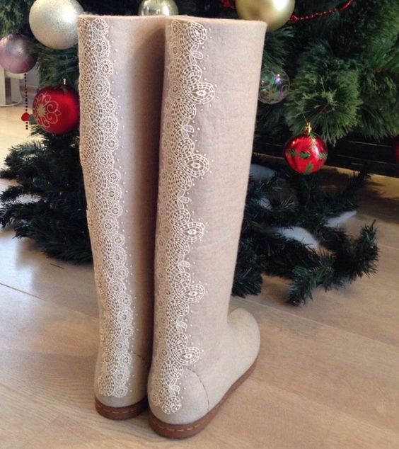 Later, felt boots began to be produced with a sole, and for women felt boots appeared - an analogue of felt boots, but designed in a more elegant, feminine version using heels, decor, jewelry, etc. Not only natural , but also artificial wool.