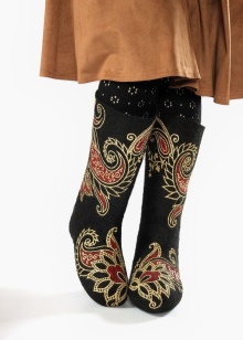 Boots designed in classic colors look great with skinny jeans, leggings, knitted or knitted dresses and skirts, turtlenecks, and sweaters. Elegant models decorated with embroidery look great with flared or straight dresses. This is a very feminine and gentle combination.