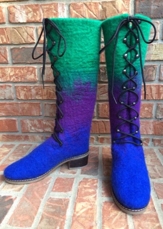 - Wool of different thickness is used for sewing boots. The highest quality and expensive - thin. It can be recognized by the characteristic bright shade.