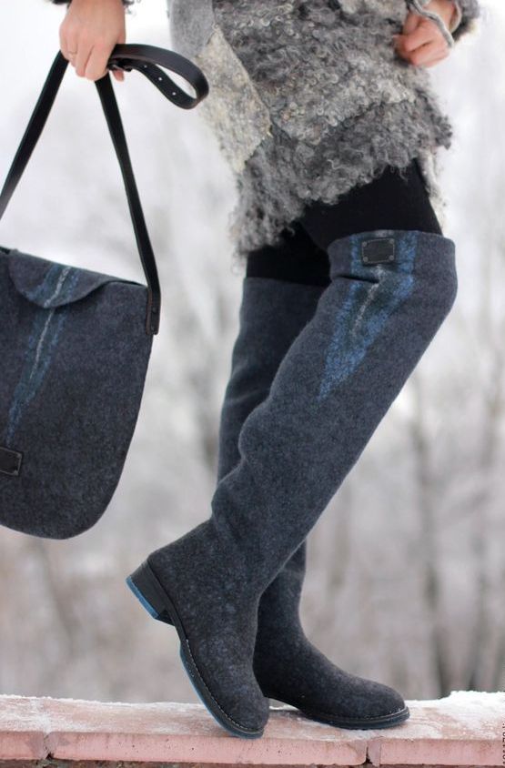 - Classic colors are still relevant and fashionable - natural colors of felted wool. Light and dark gray boots, as well as boots of beige and black are universal and perfectly combined with any outerwear.