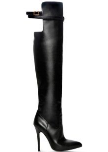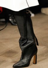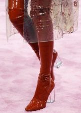 Among them are transparent options, "hidden", merging with the main part of the material and texture, richly decorated and strongly distinguished by color. Some heels even get strange shapes, for example, slightly curved, ornate, bellied. There are boots with a heel displaced from the heel towards the middle of the foot.