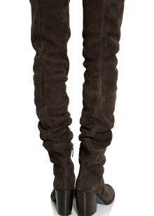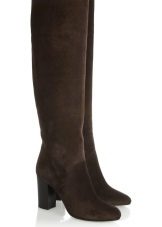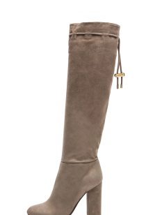 This year, special attention is paid to boots, which, although they do not go out of relevance, still for some time lost their mass popularity. Knee-high boots are made from different materials, but most of the slope is made in the direction of suede. Treads are decorated with reptile-textured leather and fur inserts.