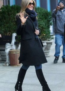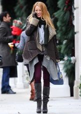 Most of the boots will look good with any outerwear, whether it's parks, insulated coats, vests, fur coats. It is worth keeping a balance between the height of the shoes and the long hem, so as not to turn into a short man. Boots made of suede and smooth leather perfectly fit to fur coats and fur vests, and dutik to down jackets.
