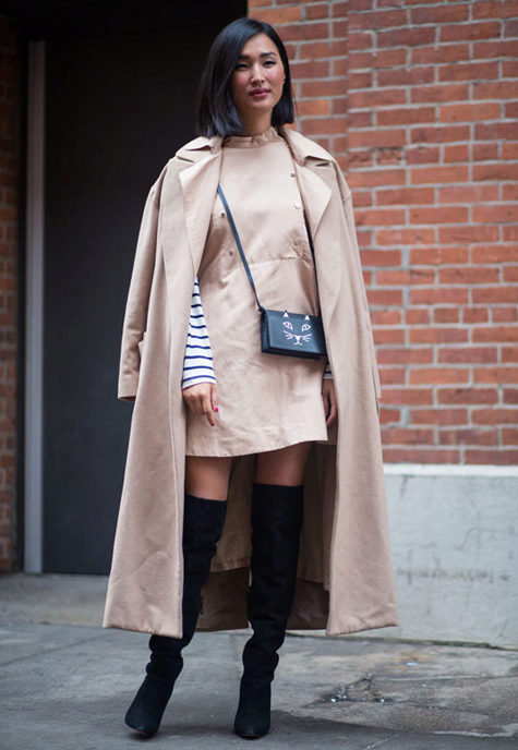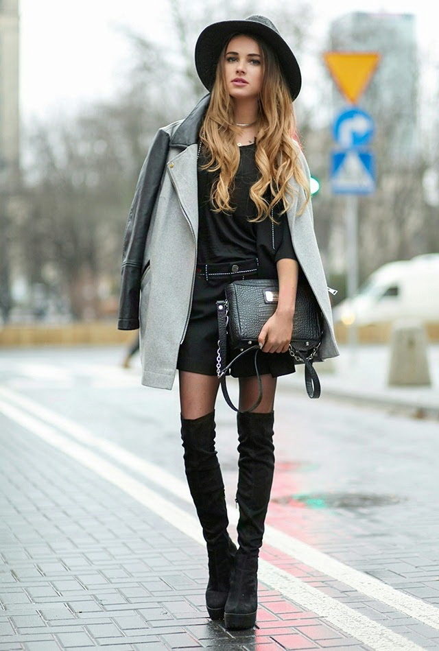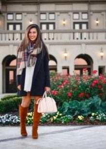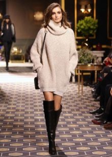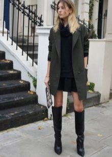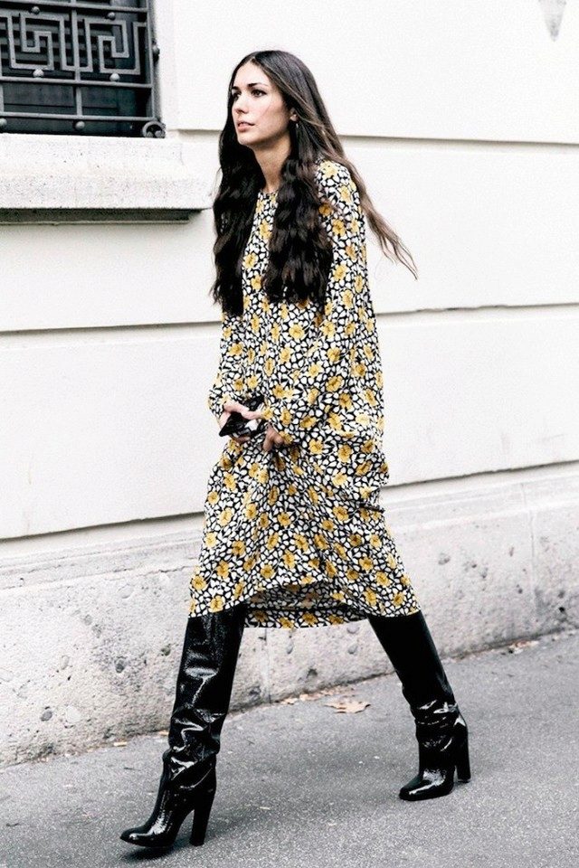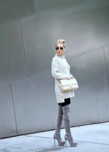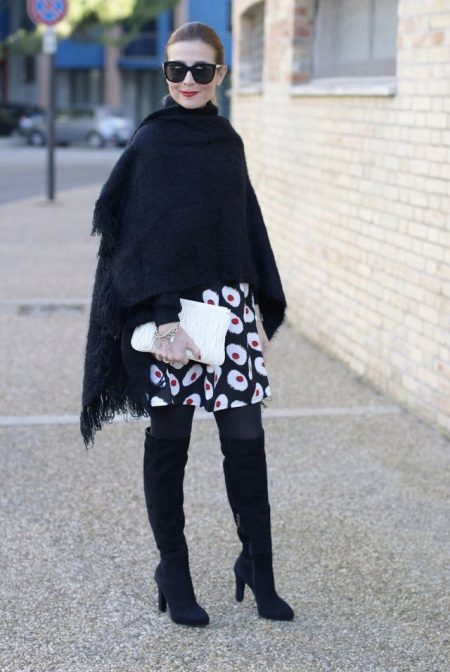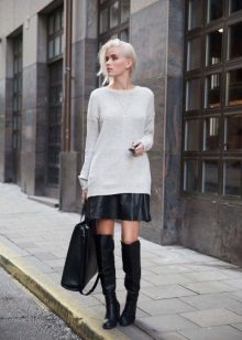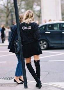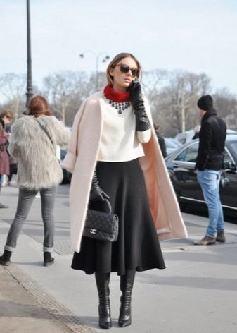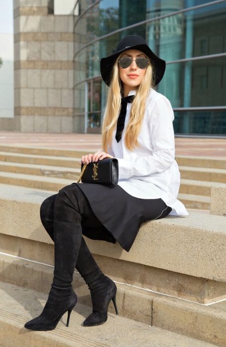 The longer the skirt, the shorter the height of the shoe should be and the longer at the heel. Best of all, skirts sit side by side with a tight-fitting tops, as a wide one can make the lower part of the body visually massive. With boots, you should wear short skirts, but in combination with leggings or thick tights, but boots and stockings may well hide under the hem of clothes. Boots to the knee can be easily combined with high knit golf, which make the image very feminine and romantic.