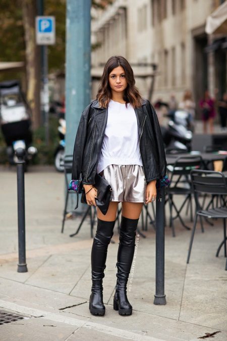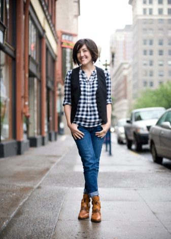 Trousers and jeans will have to pick up depending on the height and narrowness of shoes. Under high boots they will have to be refilled, so it is more expedient to choose short and tight models. As for the clothes on top, it all depends on the image and situation, so you can choose a blouse, a shirt, and a sweater.