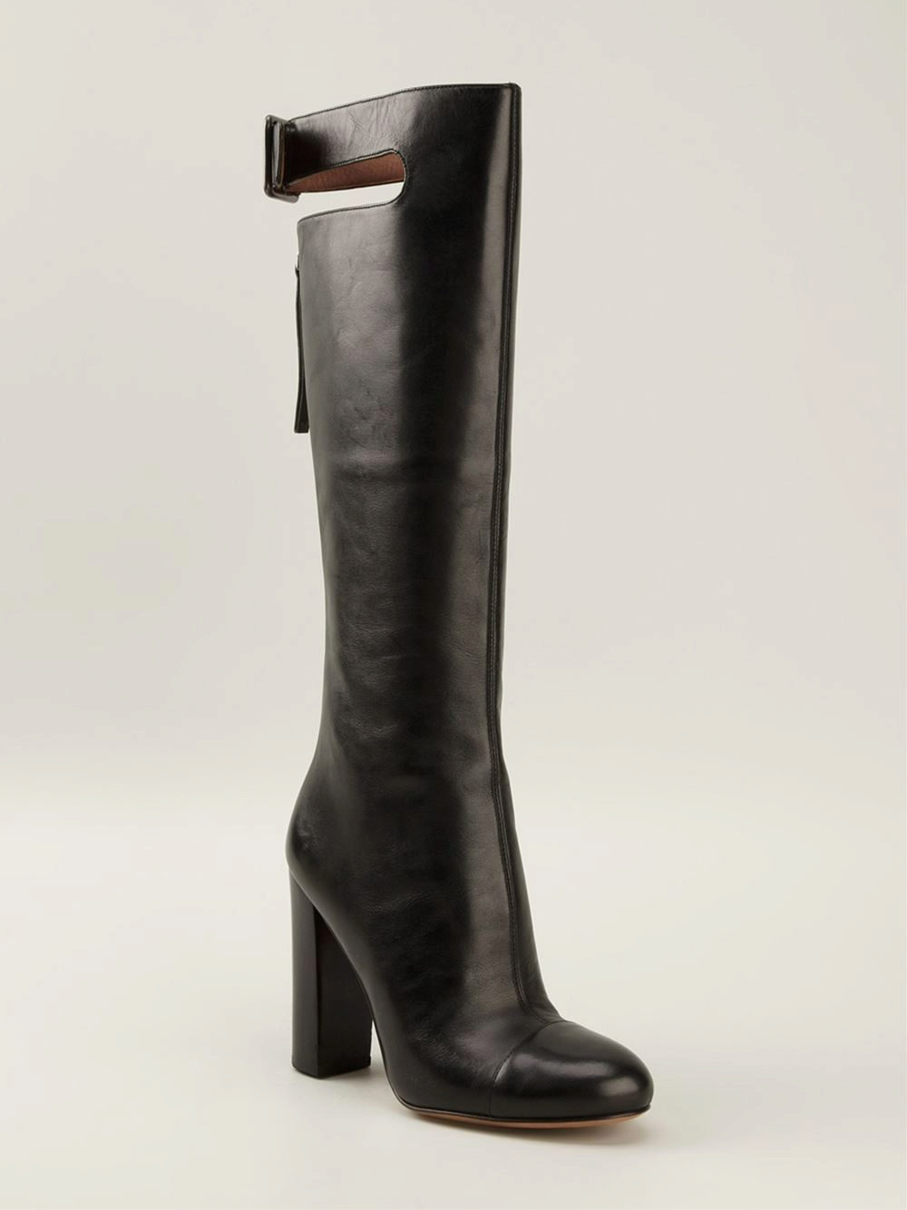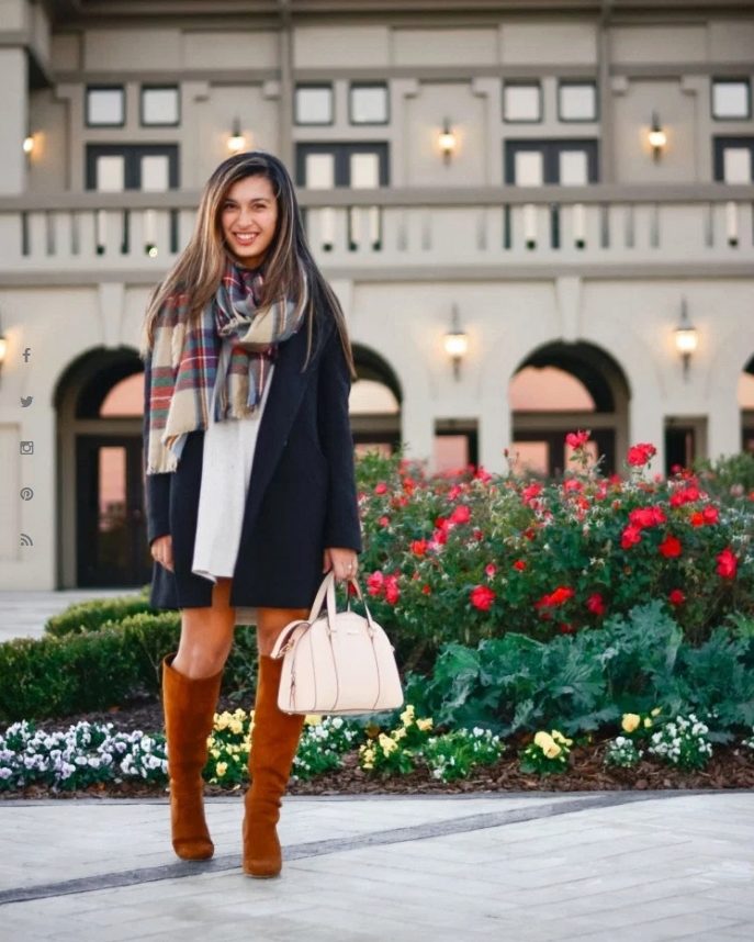 Indeed, such a height is the most common, because it allows you to keep your feet warm, wear skirts and dresses even in winter, and protects from snow or moisture. Of course, this length implies in most cases the presence of a zipper.