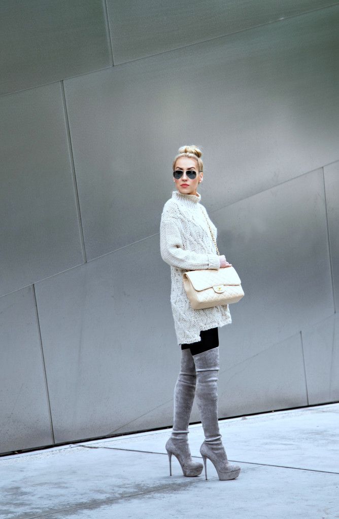 Winter for many is not a reason to abandon skirts and dresses, especially high boots will allow the legs not to freeze.