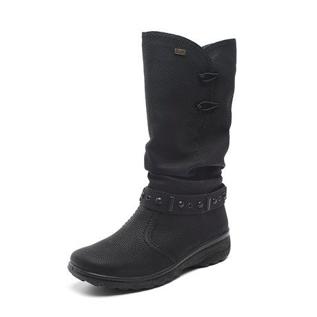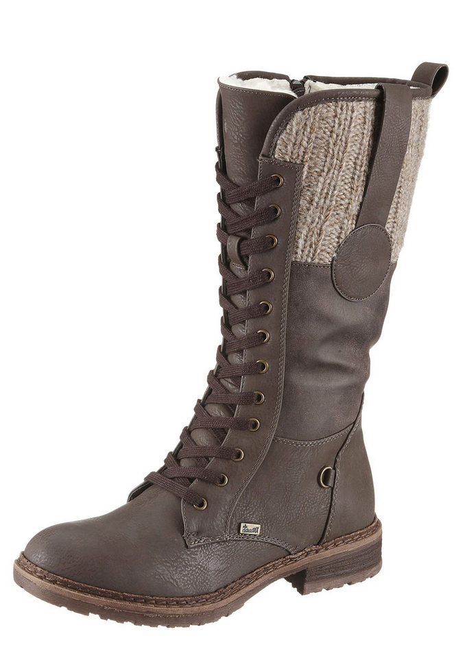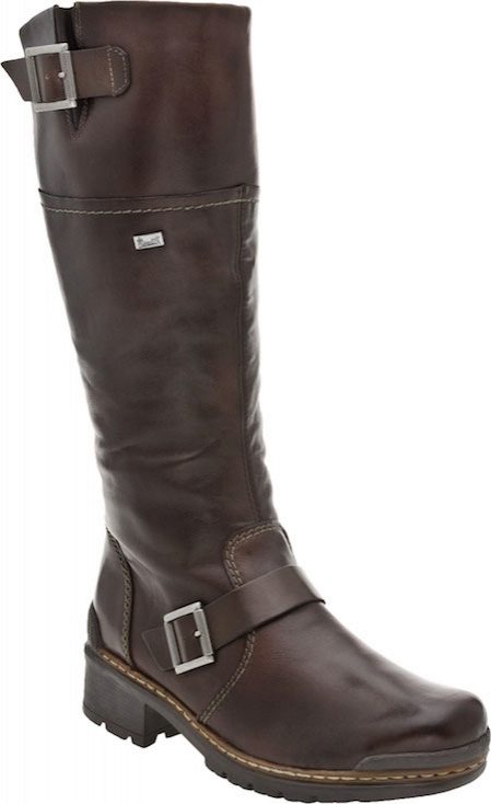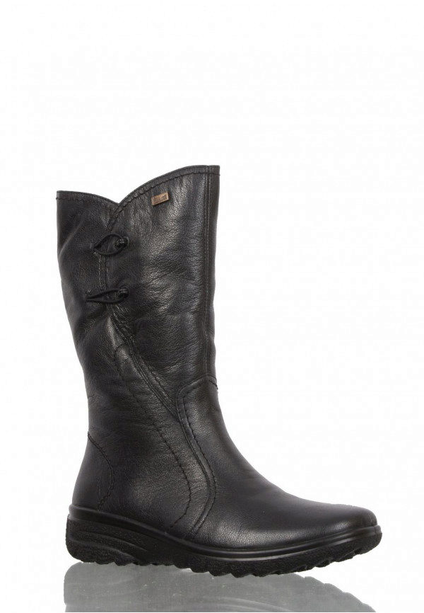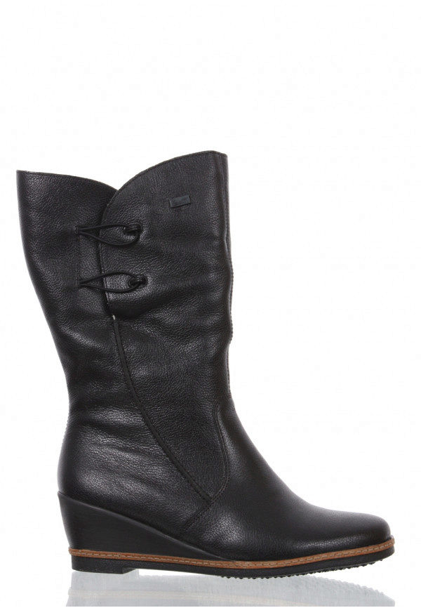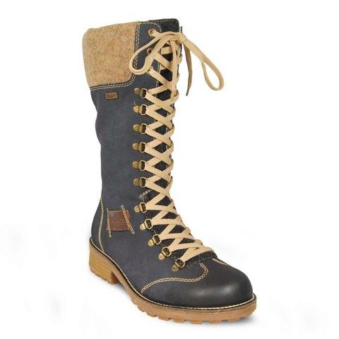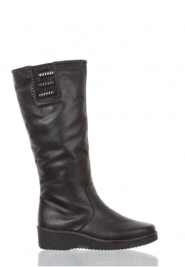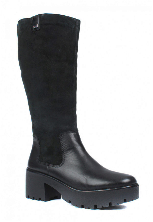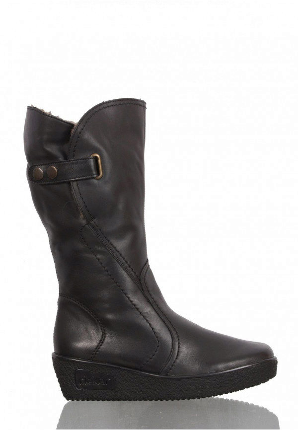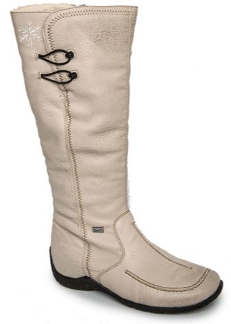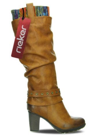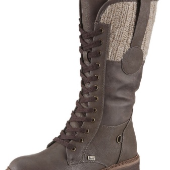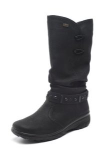 All the heels of the shoe manufacturer Rieker are supplied with a shock absorber and are mostly of medium height and, due to their shape, are very stable and practical. Shoes are made not only from natural or artificial materials - there are also combined models. For example, boots from natural suede with a toe part from artificial patent leather or boots from natural velor with stripes from artificial patent leather. The lining of sheep wool remains unchanged.