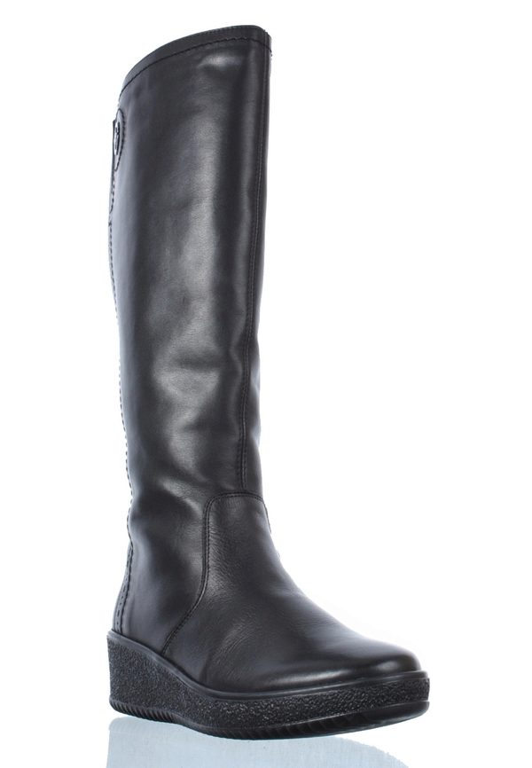 Laconic boots on a flat sole with a raised heel part have a stylish and discreet design. Made from natural or combined materials, models of the Rieker brand will make you feel warm and comfortable. Thanks to a sole made of rubber or thermoplastic elastomer, the shoes will last you more than one season. The trend of this collection are models decorated with cut-off parts, which are made of a material different from the material of the main part of the product.