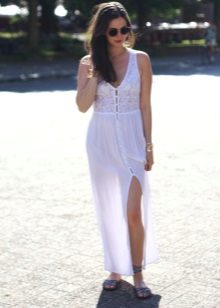 For several seasons in the trend of long sundresses that allow young ladies of "non-model" appearance to feel like real stars. A long dress can have cutouts on the sides or underskirt, and the top one - translucent, flying, creating intrigue.