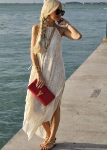 Laced sundresses also play a significant role in many summer collections. These openwork, sophisticated options, depending on the type of weaving, can be a wonderful office option, and clothing for the holidays. If the mating is large, then such a sundress can be worn over the swimsuit, while the fine mating will allow you to enter a white sundress in a business dress code.