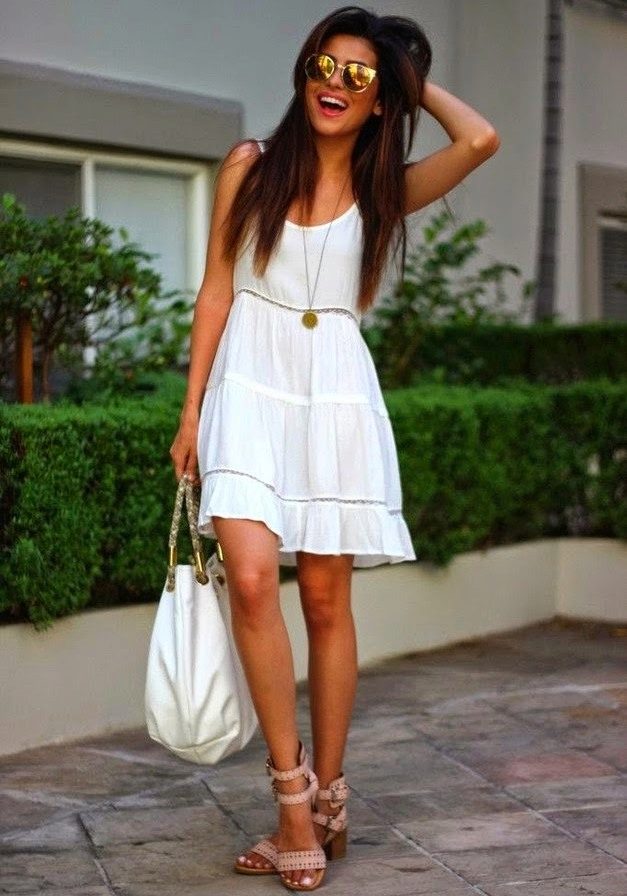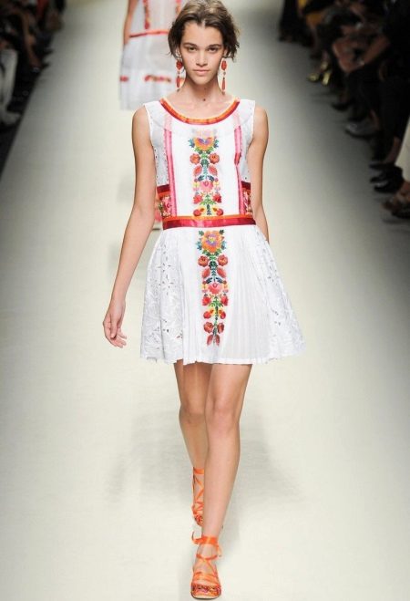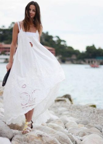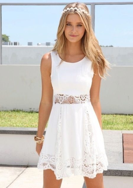 Designers often experiment with the decor on a white background, today you can find models of sundresses trimmed with embroidery, rivets or even spikes, paillettes or beads. Thus, there is a huge scope for imagination and the ability to choose a dress for any occasion.