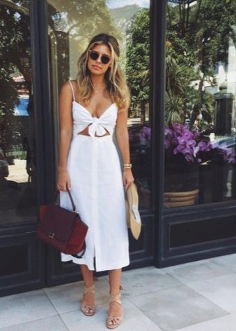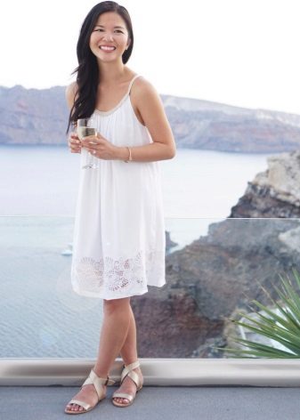 Self-confident girls can choose a tight-fitting sundress, which, however, will not forgive shortcomings. But if the figure is a matter of pride, then this option will look fantastic. A white sundress “in shape” will look wonderful on tanned skin, highlighting its bronze tint.
