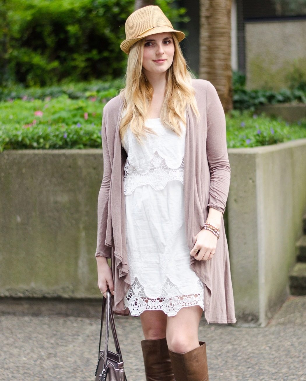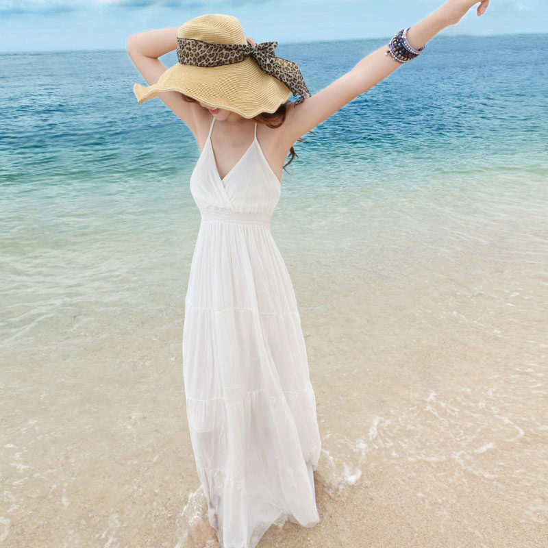 This image personifies a hot summer - a snow-white sundress beautifully emphasizes the tan, and a wide-brimmed hat “balances” the image, overlapping with folds on the skirt.