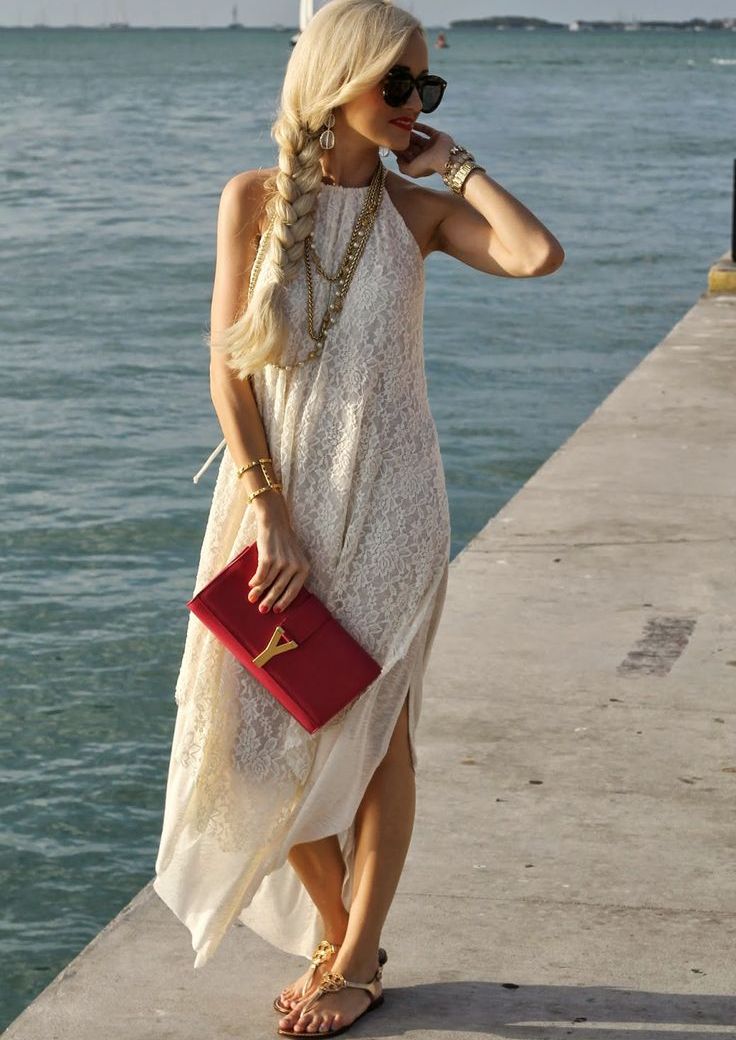 Incomparable chiffon sundresses, flying, flowing and incredibly light - another trend that does not descend from fashion catwalks. White chiffon outfits are virtually weightless, both literally and visually, and the girl in this sundress looks romantic and fragile. In addition, chiffon is a translucent fabric and in various combinations is very sexy.