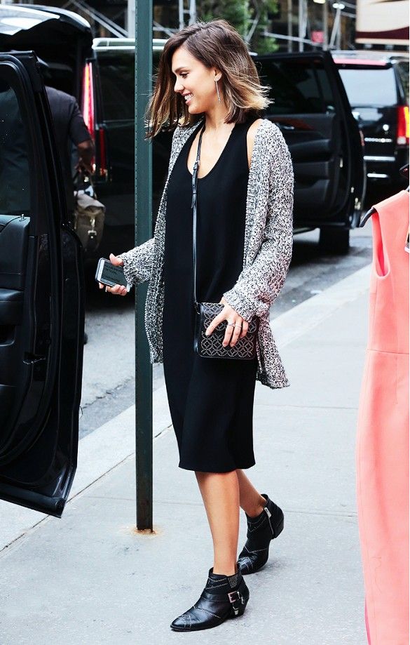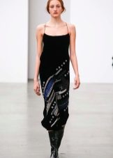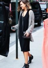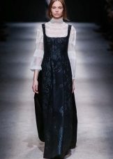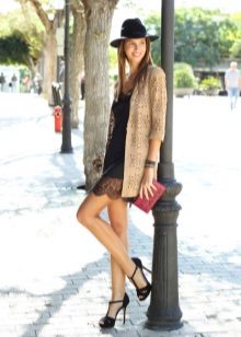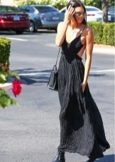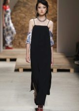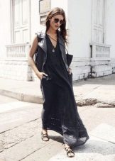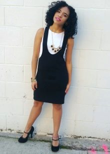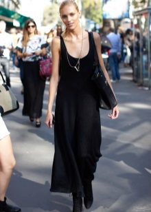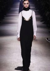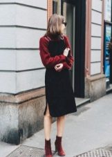 In cool weather, items are selected with a long sleeve. This could be a high-neck sweater or a pullover with a cut-out chest. From above sundress without problems, you can throw a jacket or coat. A cashmere overcoat and a leather raincoat will look very stylish.