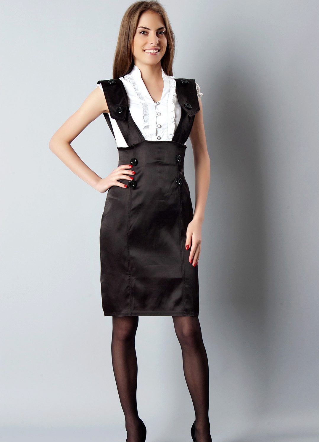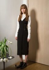The detachable top of the sundress will emphasize the waistline, which can be accentuated with a belt with a buckle. Such a dress is decorated with buttons on the front, which only emphasizes business style.