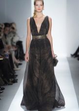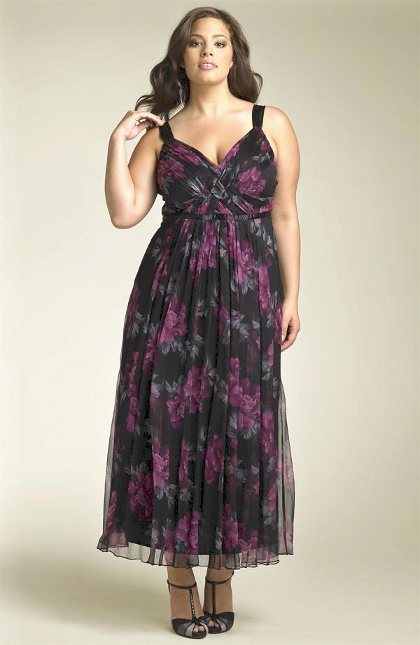 You can also recommend a long chiffon dress. It is advisable to choose the silhouette of a trapezoidal shape. All the flaws of the figure will be covered with a light flying cloth.