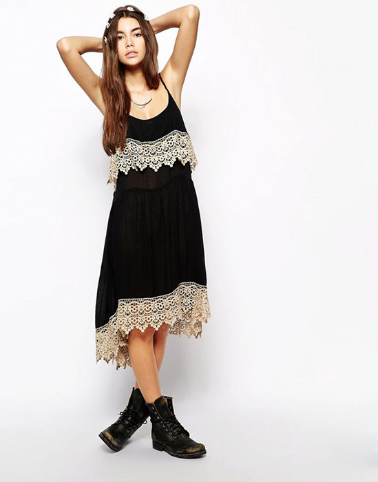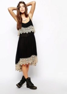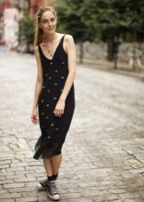 If you disassemble sundresses by style, the most popular of them is underwear. A loose cut with a deep neckline, on thin interlacing straps. Often made of fine fabrics such as satin, silk and chiffon. Lace is used as decor.