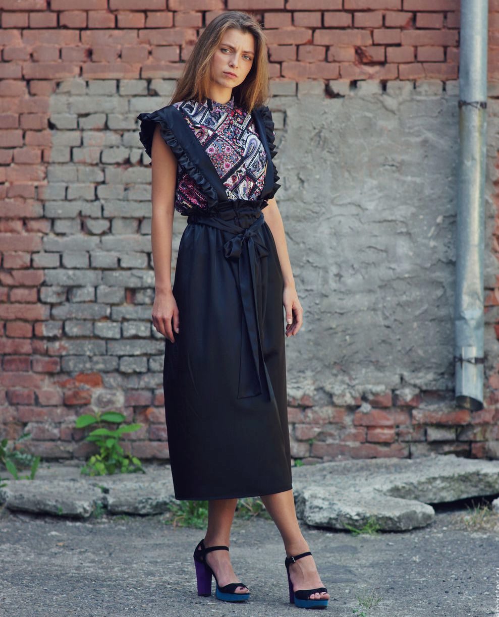The sundress skirt makes an important impression. It can be narrow, the dress code also allows trapezoid and flared shape.