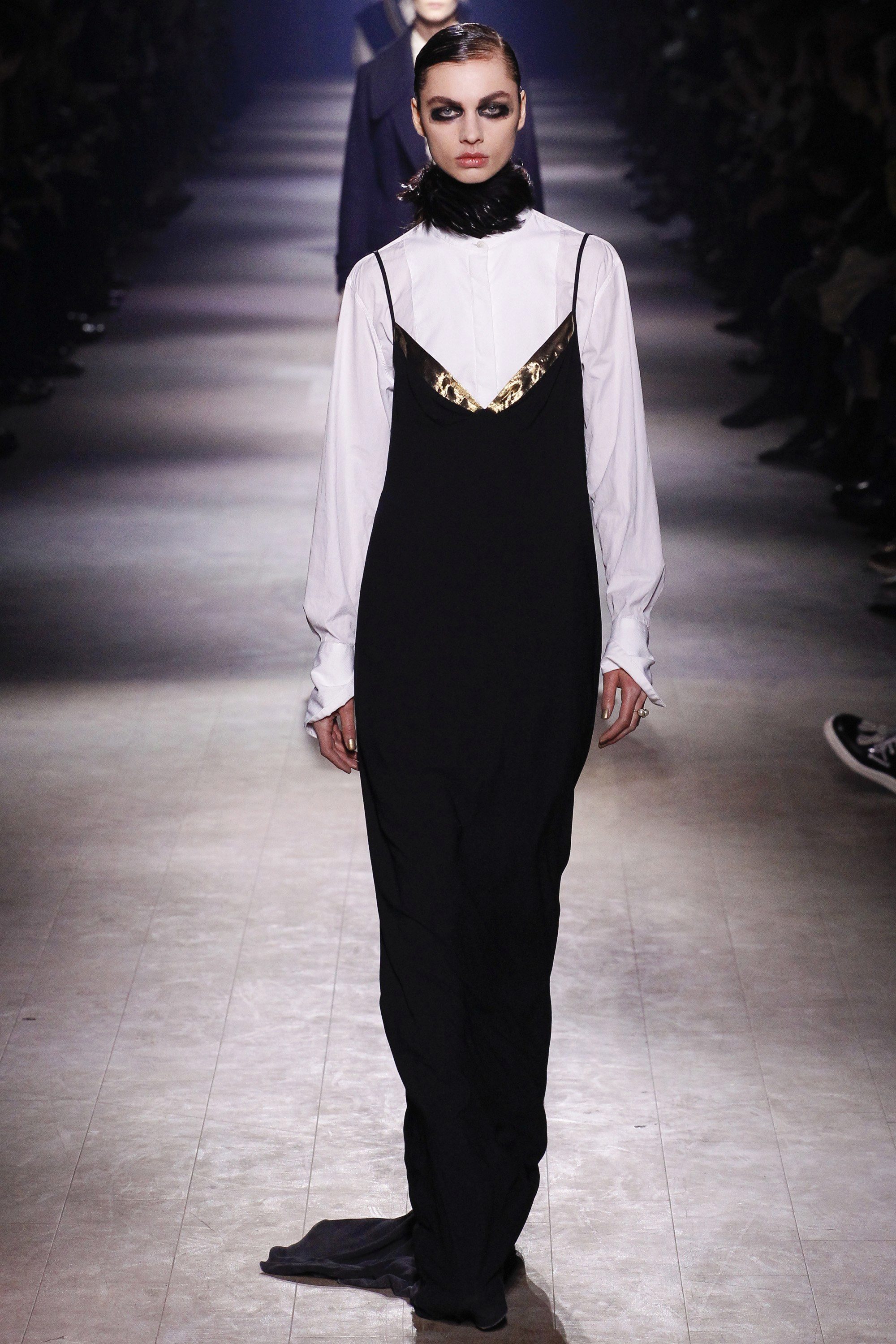 A silk white blouse can be worn to a satin sundress with an openwork bodice.