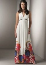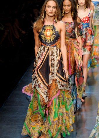 - Many models of long sundresses are decorated with luxurious prints. It is worth looking at the picture and be neat with it. Small ornament gives the silhouette of harmony, and large - adds a few pounds.