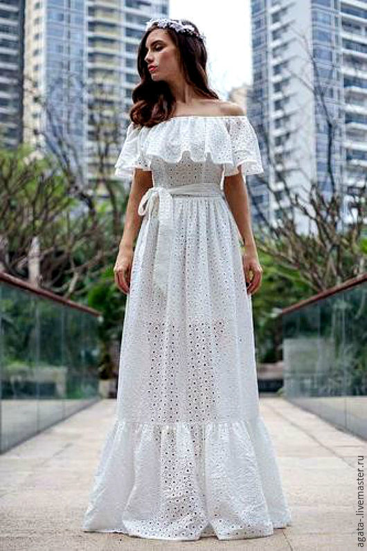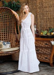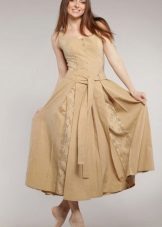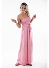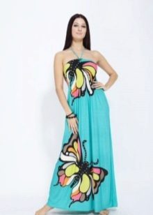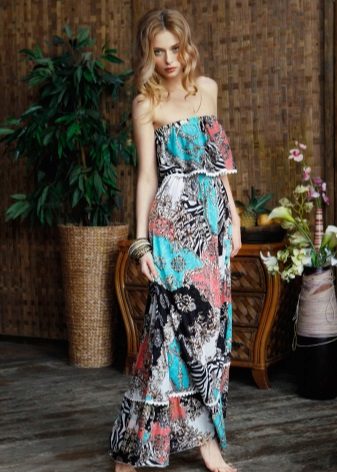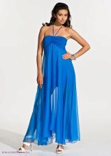 Long dress can be with straps or without. The first option may have wide or narrow straps. Charming look long sundresses on one shoulder. Original look models with braided ties at the neck.