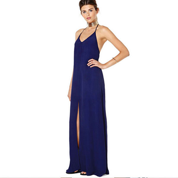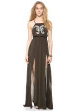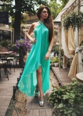 Sexy and fresh look sundresses on the floor with one or two cutouts from the hip. They emphasize the slenderness of the legs, give the image of charm and appeal.