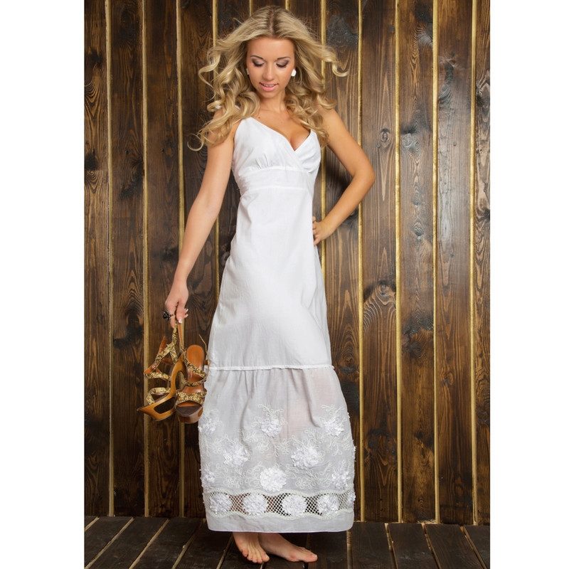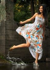 - When buying a maxi length sundress, it is worth thinking about what kind of shoes you will wear. It is better to take shoes with you, and already choose a model for specific sandals or sandals.