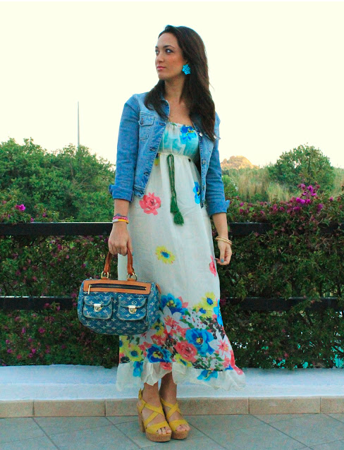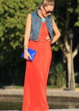 The summer dress in the floor is beautifully combined with a denim jacket or a short jacket jacket. An excellent tandem is a long model with sweaters on buttons or with short jackets, complemented by a belt.
