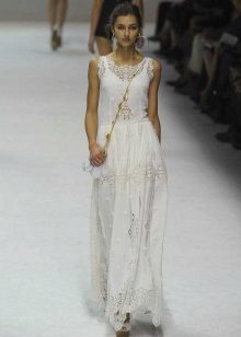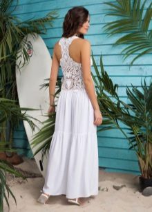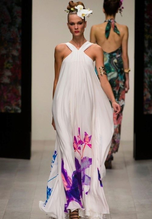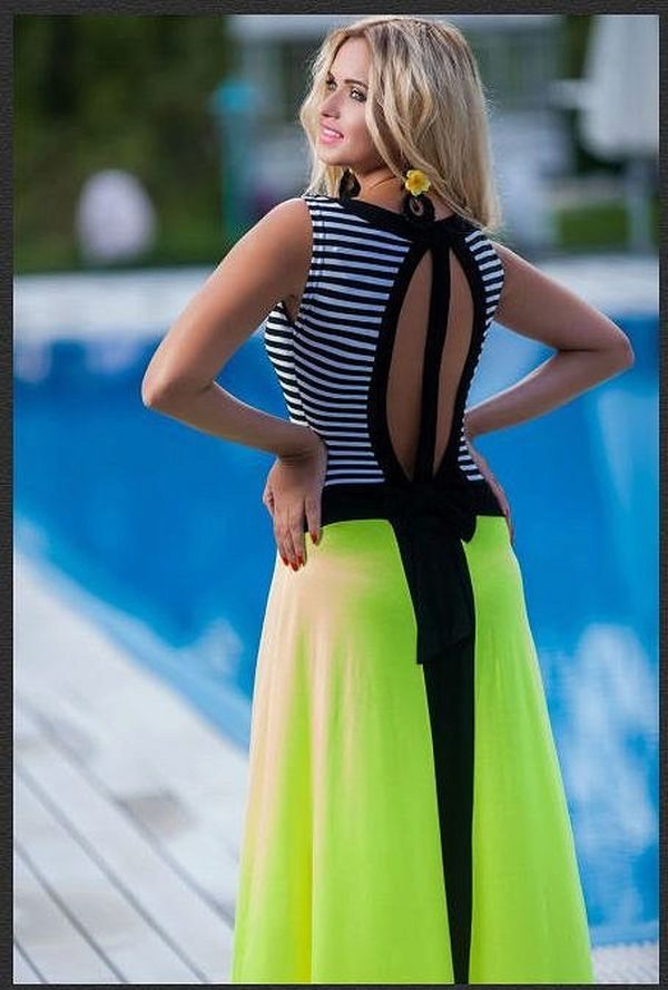 Designers are not afraid to experiment, creating a delightful, attractive and fashionable models of long sundresses. For summer, a model with an open back is perfect. In such a dress you just replace all the men.