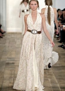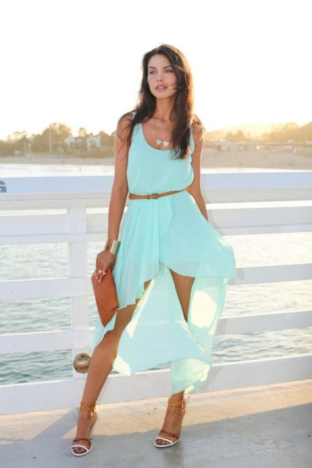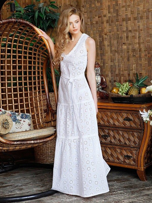 Long sundresses from airy, lightweight materials look elegant and elegant. An excellent solution is satin, chiffon or silk. Even with a light breeze, such an outfit will develop beautifully.