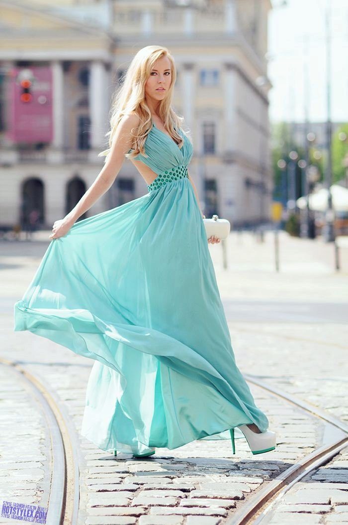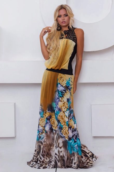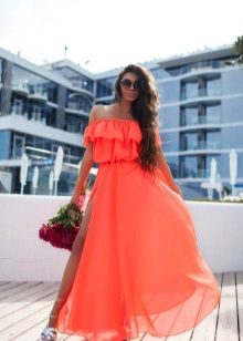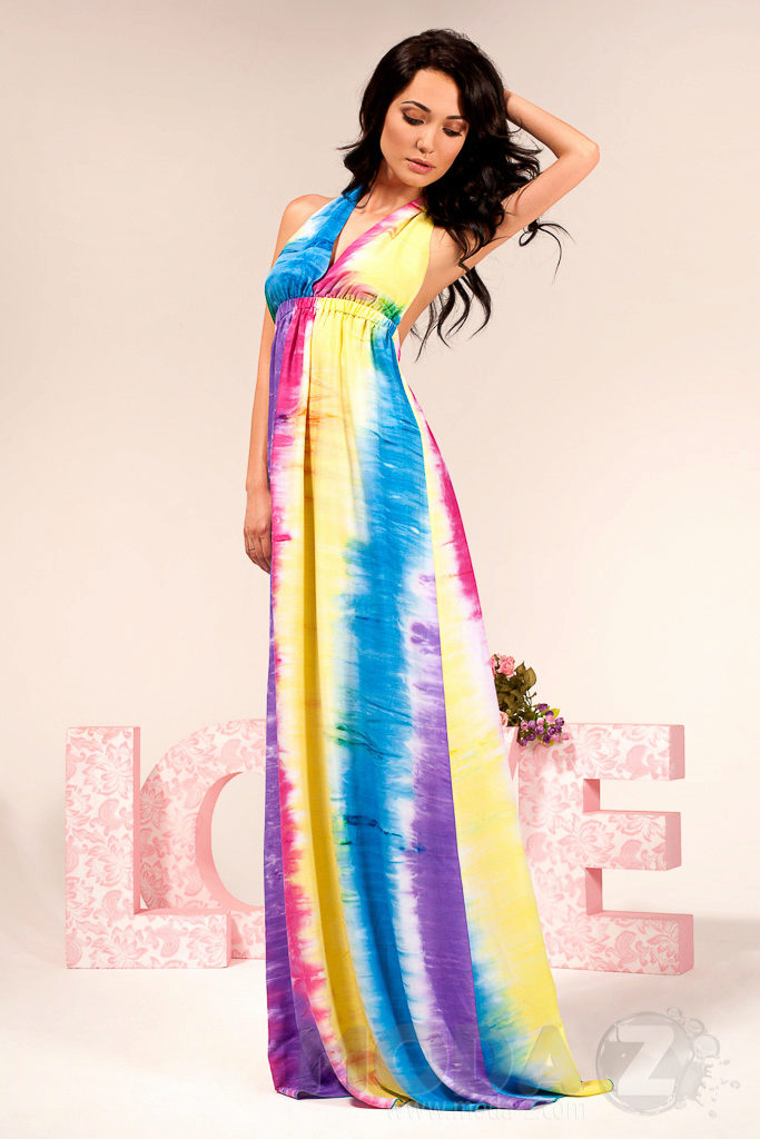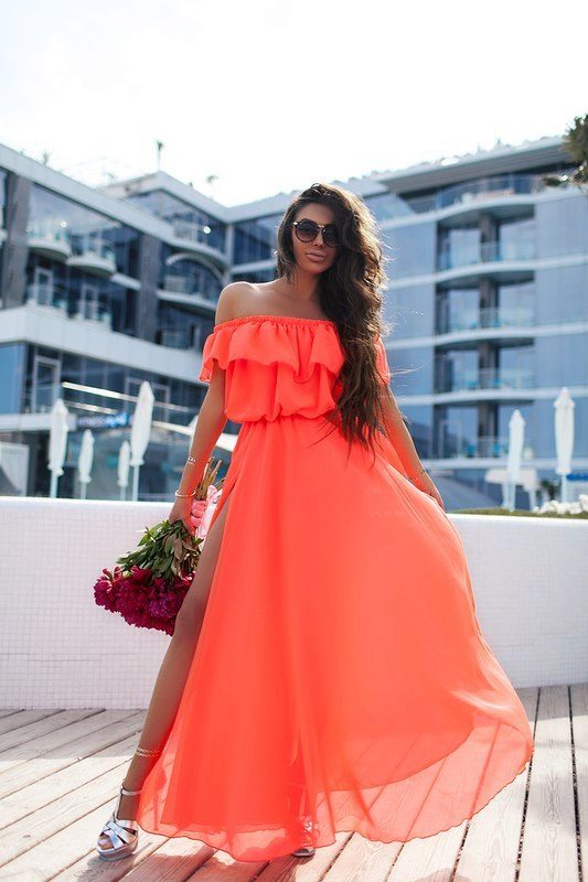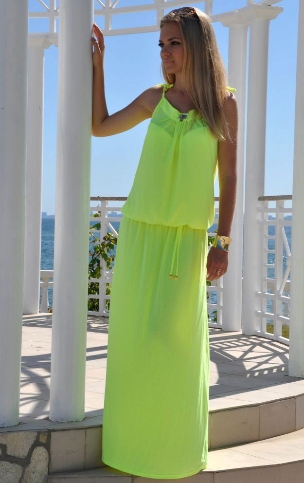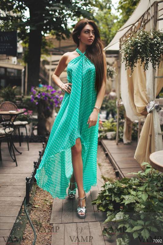 Bright colors are great for summer, but you can choose monochrome models. Looks elegant and stylish dress in the floor green, blue, red, turquoise, orange or pink.