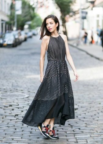 - First you need to decide where you will wear a dress. For everyday wear and a solemn event, the model of a long sundress will be different. For example, for a party you can buy an attractive model of silk, decorated with rhinestones.