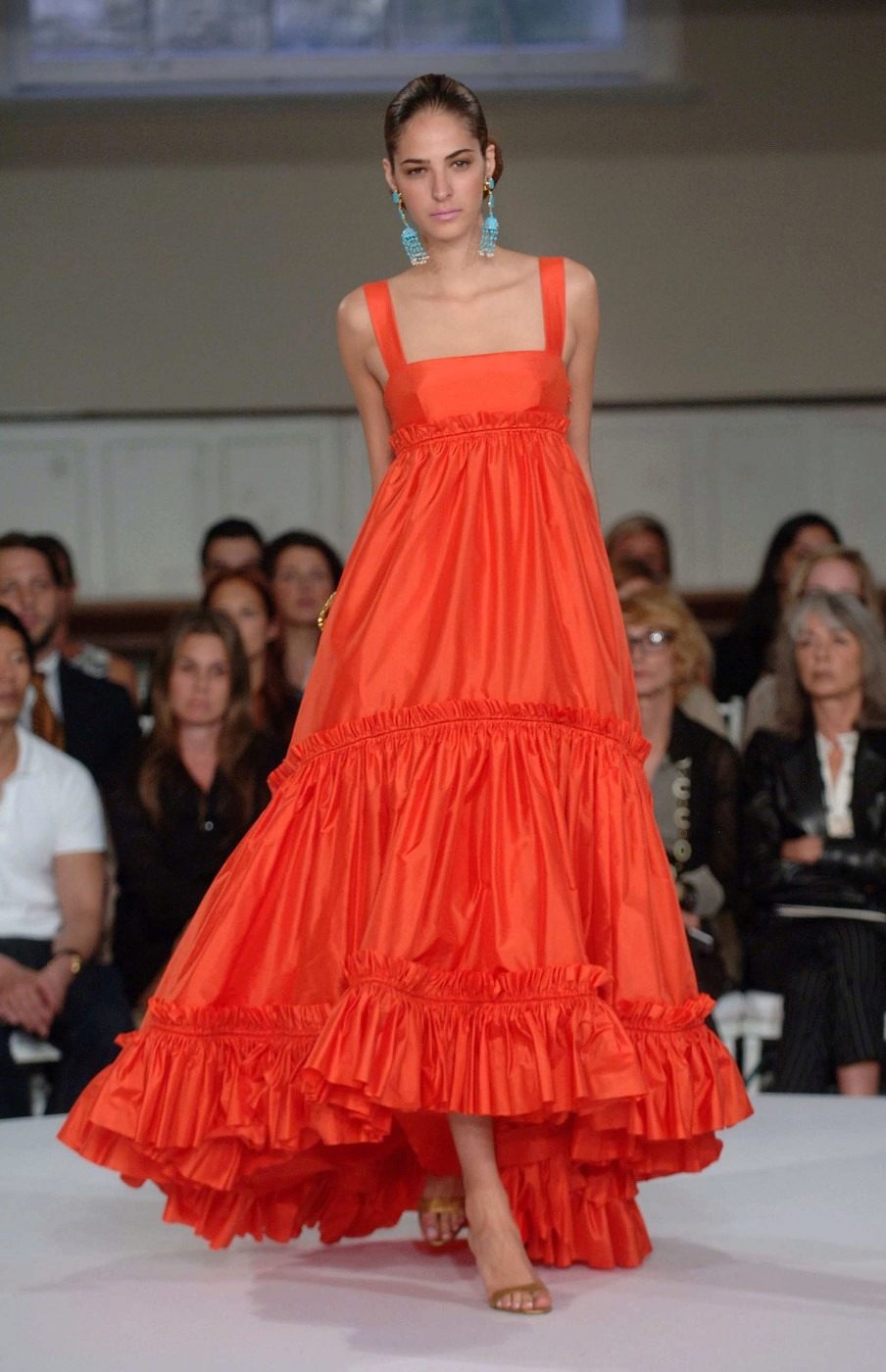 With long dress you can wear different shoes. Beautifully refined sandals without bright decor, high-heeled sandals, ballet flats with a sharp toe.