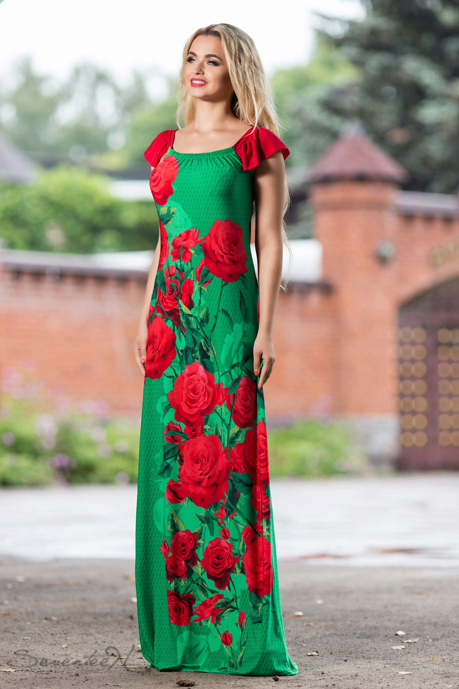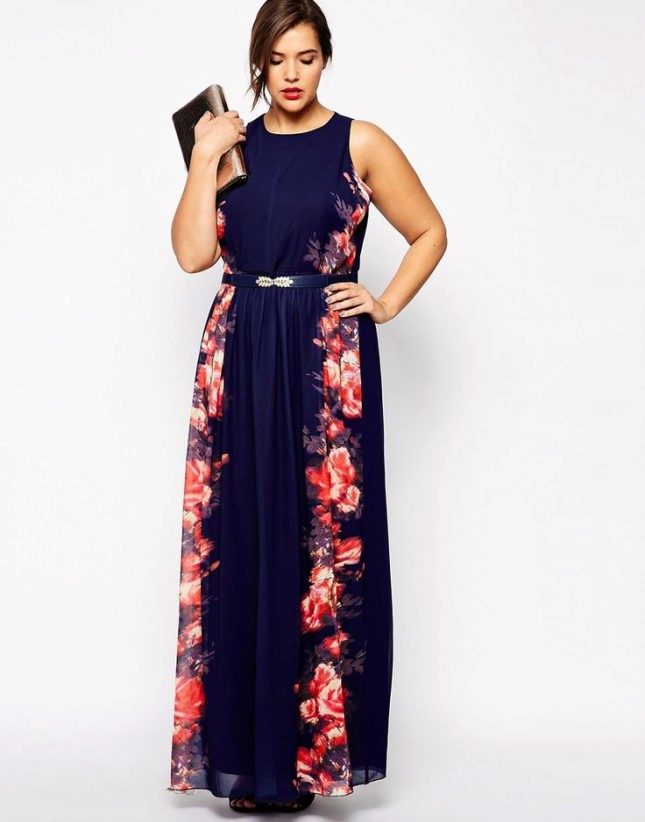 Girls with curvaceous fit model with a clapper from the chest, waist or hips. Elegantly looks a long dress, flared from the knees.