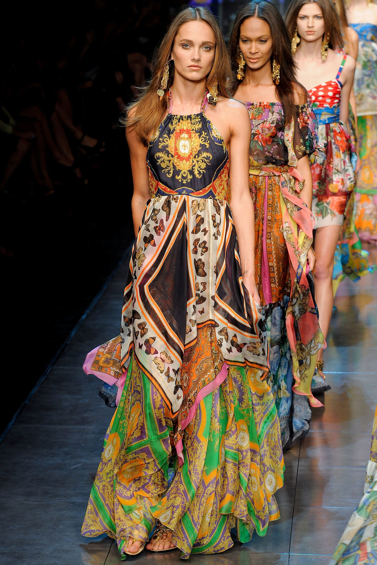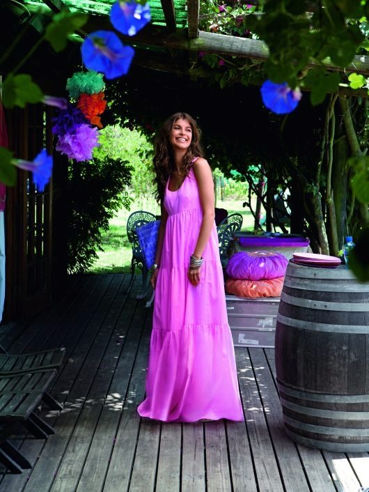 In the trend again, long sundresses decorated with images of exotic fruits or colorful animals.