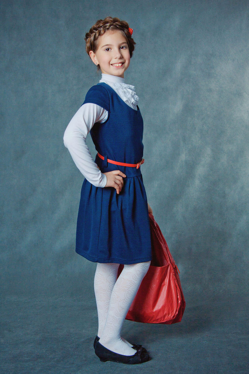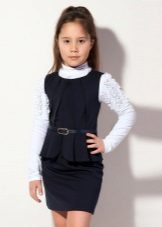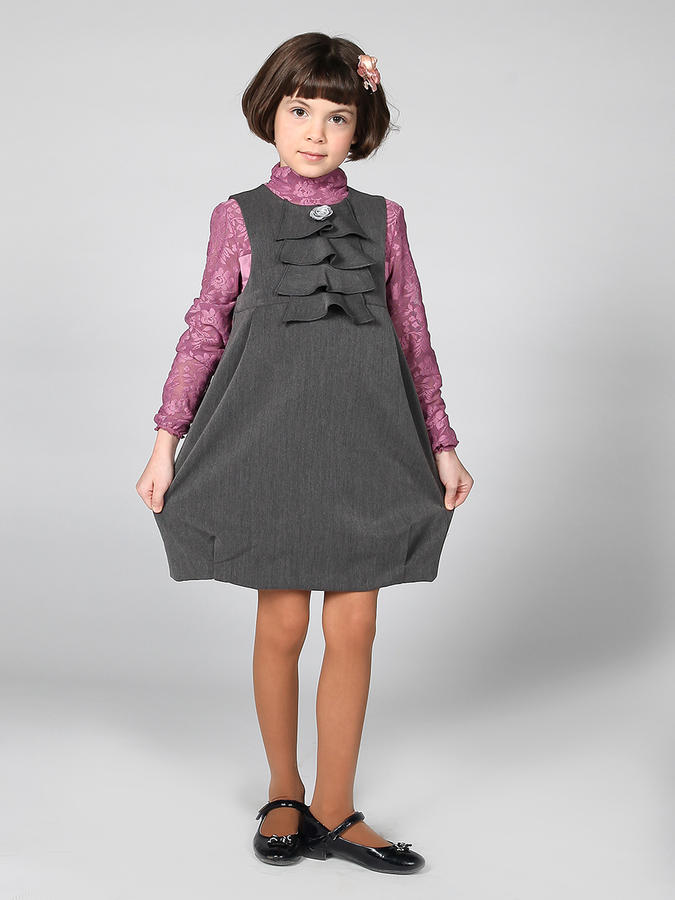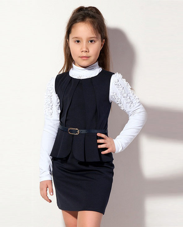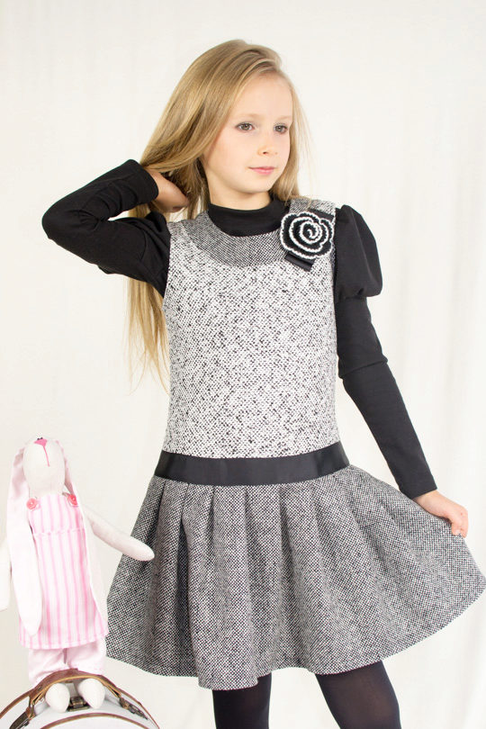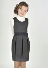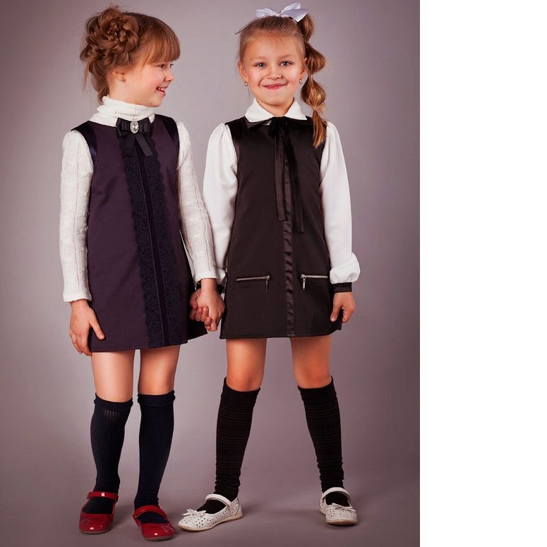 By law, a dress is the best clothes for schoolgirls. It meets all the requirements of school uniforms, while it is convenient for both the child and mother. It is easy to choose a set of blouses, turtlenecks or tops for a dress and change the image daily.