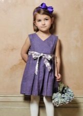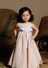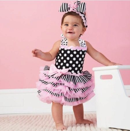 Great summer option for the smallest - puppet sarafan strap Do not constrain the movements of the child, allowing the girl to feel comfortable even in the heat. Young ladies will appreciate the pink finish of the sundress and the flirty bow, and the base, made of light-colored fabric, will not attract the sun's rays.