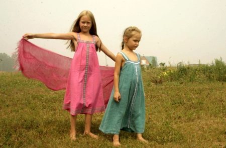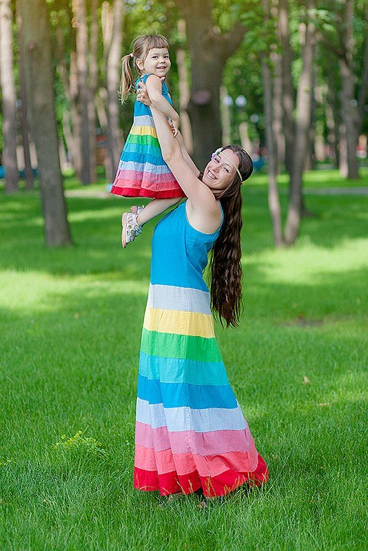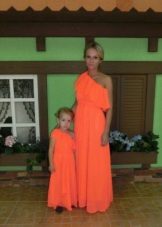 Long sundresses, a skirt which can reach the floor - an option, rather, for the celebration. Little girls, whose clothes copy evening dresses, look cute and touching, and if the mother participates in the event, you can create a true family look by dressing in sundresses of the same color or cut.